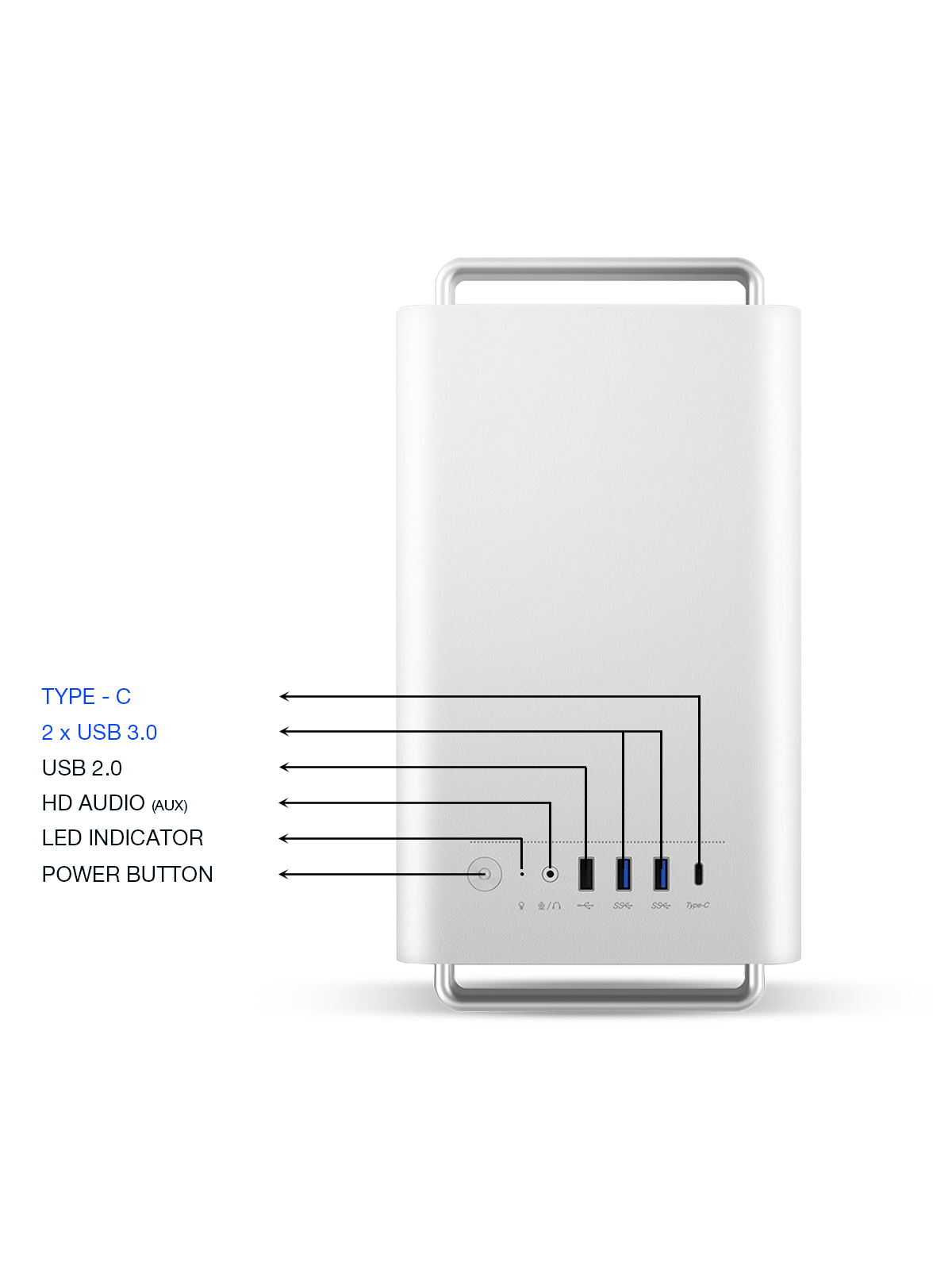 - Front I/O: 2 x USB 3.0, 1 x USB 1.1, 1 x USB Type-C, HD Audio